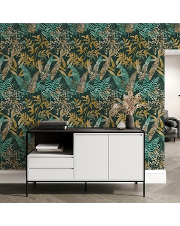 An exotic tropical leaf overlay print in moody blue and ochre tones, versatile and durable this product is perfect for high traffic areas such as halls stairs and landing - it...