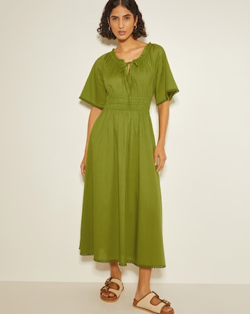 Monsoon Nora Short Sleeve Cotton Midi Dress