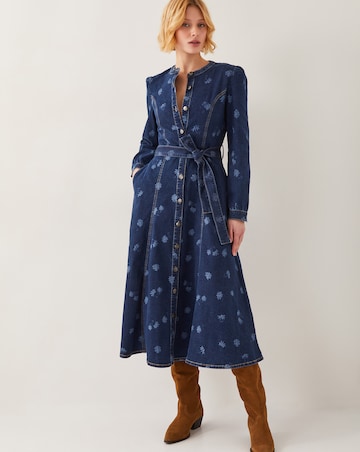 Monsoon Lulu Daisy Denim Midi DressDenim time, baby. A versatile pick you can style casually or dress up for any weekend occasion, this dress is designed in a dark blue denim ...