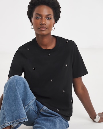 This elevated t-shirt features studded star details, short sleeves, and a classic crew neck. Made with our soft, breathable jersey, comfort is no compromise. Coming in a black...