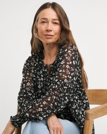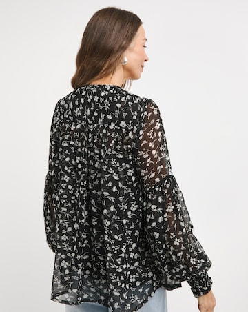 Womens Georgette Blouson Sleeve Blouse- Mono Floral